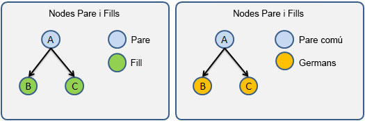 - Estructures jeràrquiques: també anomenades arbres, es componen de nodes (unitats d’informació) associats a nodes pares i nodes fills, establint així relacions de dependència.