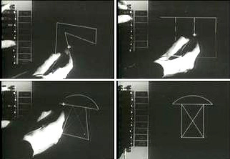 La discusión sobre cómo deberían relacionarse los dispositivos de entrada con los de salida pronto se convirtió en un campo propio conocido como HCI . En los sesenta y setenta, la optimización de interfaces no solo se centraba en refinar el diseño del hardware, sino que comenzaron a aparecer programas que controlaban el proceso de interacción. En 1963, Ivan Sutherland, un estudiante de doctorado del MIT, inspirado por los escritos de Vannevar Bush sobre el concepto «Memex» (1945), inventó el Sketchpad, también conocido como Robot Draftsman, un programa de ordenador que permitía hacer simulaciones visuales de formas geométricas usando un lápiz óptico.